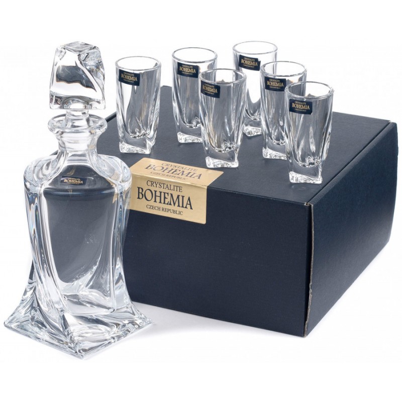 BOHEMIA QUADRO zestaw do likieru shot 1 karafka + 6 kieliszków Quadro