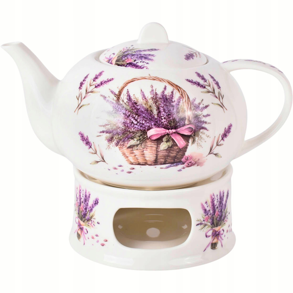 Porcelanowy dzbanek na podgrzewaczu Kosze Kwiatów LAWENDA