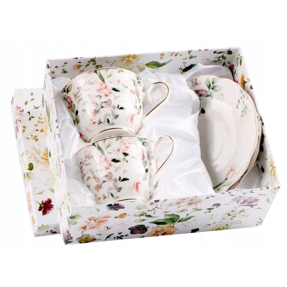 Wprowadź do swojej codzienności odrobinę klasy i stylu z eleganckim zestawem filiżanek. Porcelanowe filiżanki ozdobione subtelnym kwiatowym wzorem z delikatnymi złotymi akcentami będą doskonałym dodatkiem do każdej zastawy stołowej. Dzięki ozdobnemu pudełku zestaw idealnie sprawdzi się jako prezent na każdą okazję.