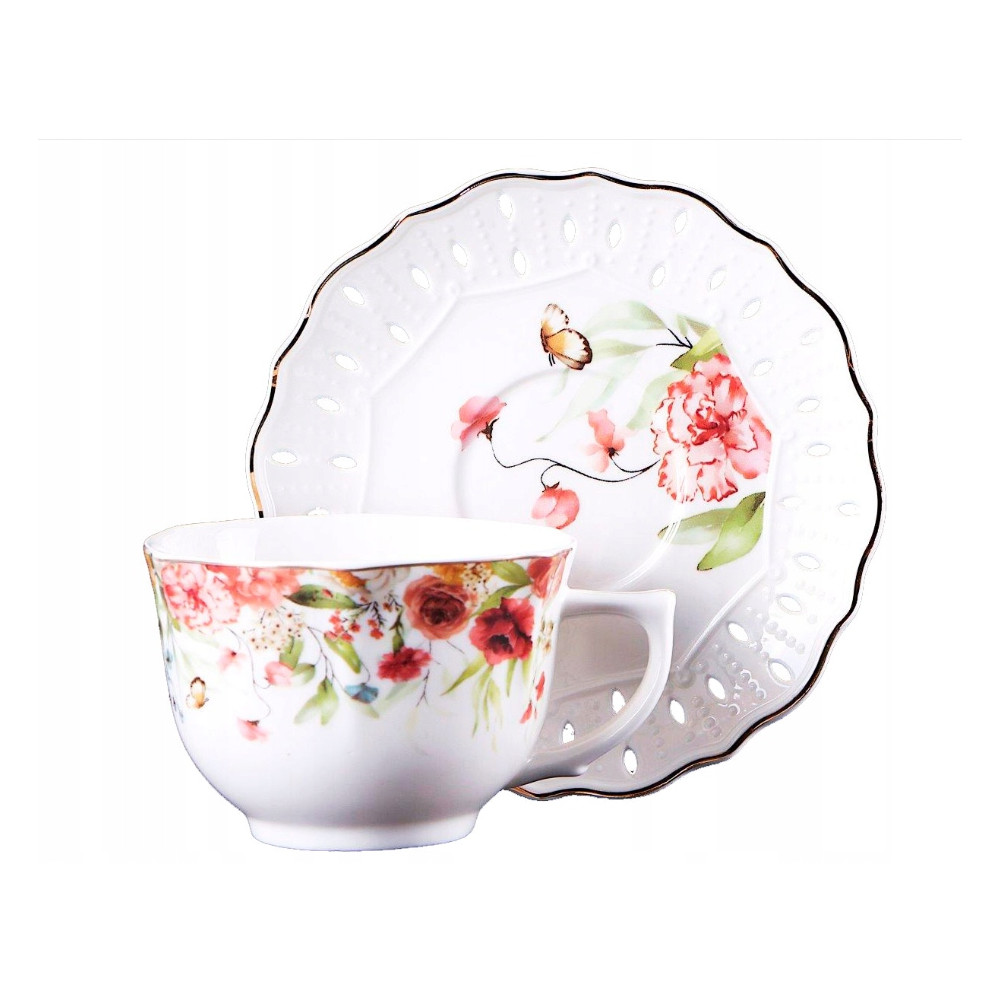 Elegancja, subtelność i wyjątkowy design - zestaw filiżanek GABRIELE to idealny wybór dla osób ceniących piękno i styl w codziennym użytkowaniu. Delikatne kwiatowe wzory w połączeniu z klasycznym, ażurowym spodkiem czynią ten komplet wyjątkowym dodatkiem do każdej kuchni czy salonu.