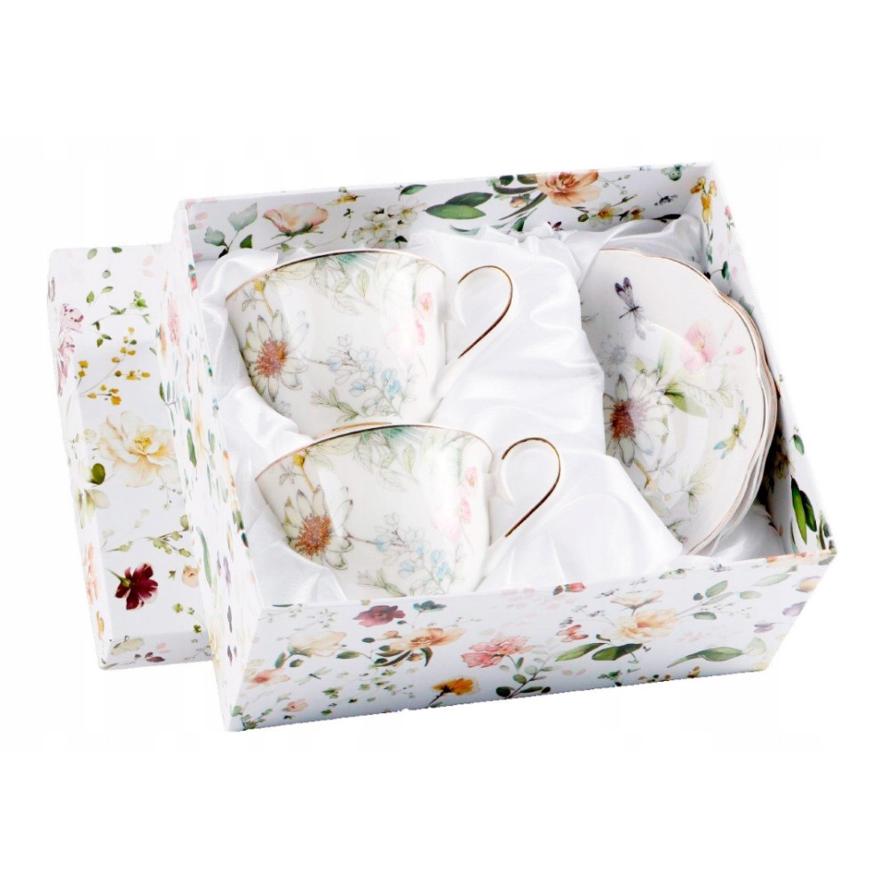 Dodaj wyrafinowanego charakteru swoim spotkaniom przy kawie lub herbacie z luksusowym zestawem filiżanek. Wykonane z wysokiej jakości porcelany, filiżanki zdobią subtelne kwiatowe motywy z delikatnymi złotymi akcentami, które podkreślają ich ponadczasową elegancję. Dzięki ozdobnemu pudełku zestaw doskonale sprawdzi się jako wyjątkowy prezent.