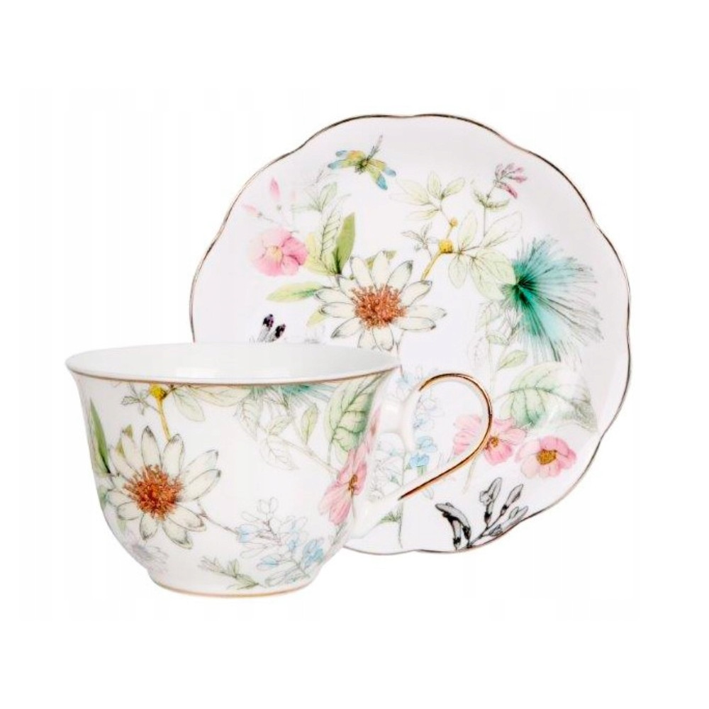 Dodaj wyrafinowanego charakteru swoim spotkaniom przy kawie lub herbacie z luksusowym zestawem filiżanek. Wykonane z wysokiej jakości porcelany, filiżanki zdobią subtelne kwiatowe motywy z delikatnymi złotymi akcentami, które podkreślają ich ponadczasową elegancję. Dzięki ozdobnemu pudełku zestaw doskonale sprawdzi się jako wyjątkowy prezent.