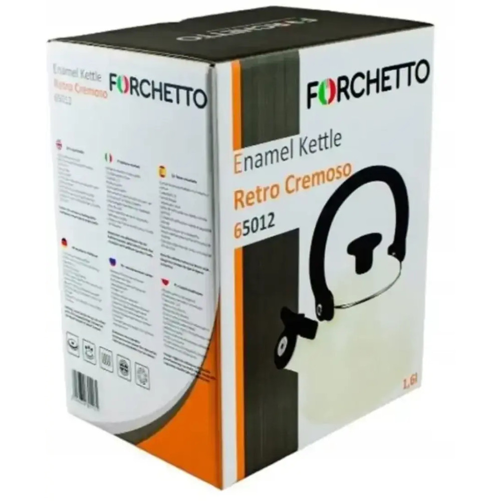 Kremowy czajnik emaliowany Forchetto Retro Cremoso 1,6l z gwizdkiem i składaną rączką