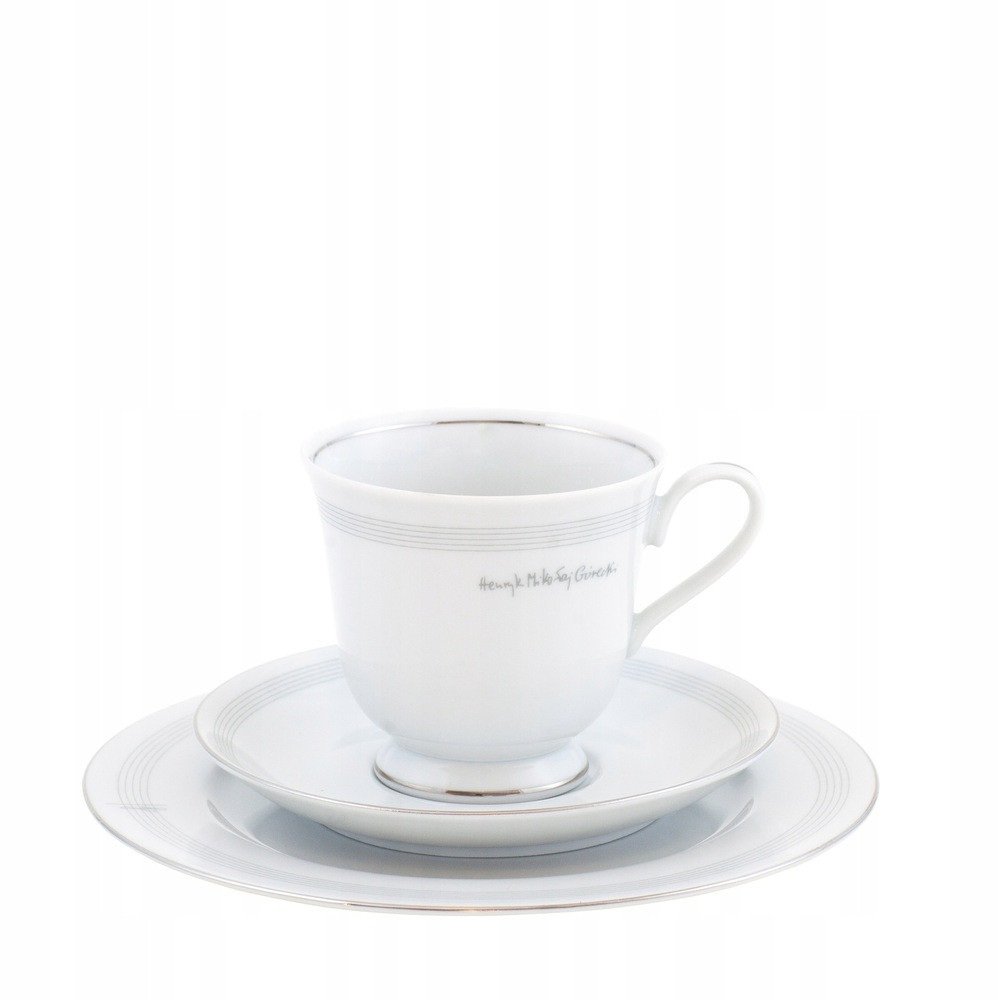 Elegancki, porcelanowy zestaw śniadaniowy inspirowany twórczością Henryka Mikołaja Góreckiego, jednego z najwybitniejszych polskich kompozytorów. Idealny zarówno do codziennego użytku, jak i jako wyjątkowy prezent dla miłośników muzyki, sztuki i polskiej kultury.