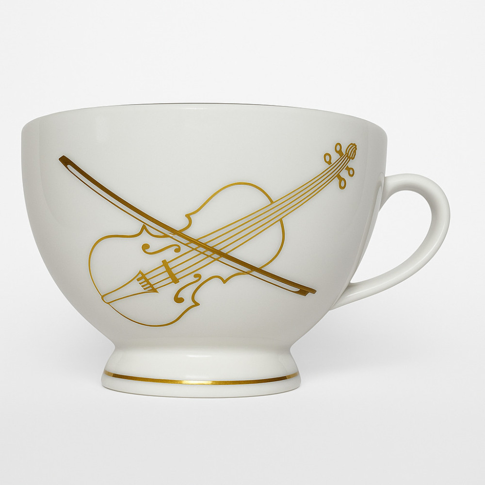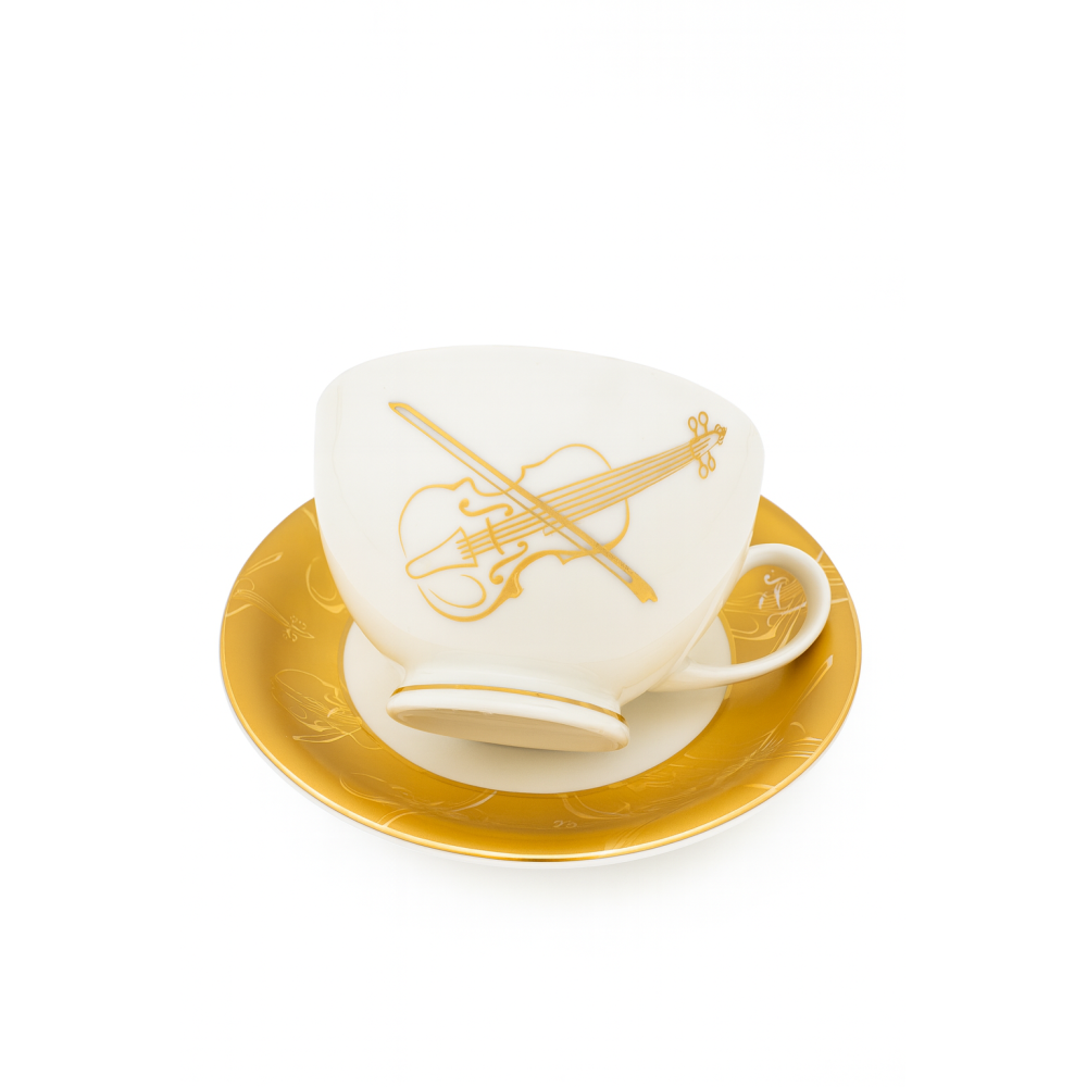 Filiżanka została wykonana z wysokogatunkowej porcelany i ozdobiona motywem graficznym przedstawiającym Karola Szymanowskiego, jednego z najwybitniejszych polskich kompozytorów XX wieku. Subtelne kolory, klasyczne linie oraz złocenia nadają zestawowi wyjątkowego charakteru.
