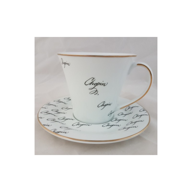 BOGUCICE Fryderyk Chopin kubek ze spodkiem 300 ml z POLSKIEJ PORCELANY w opakowaniu prezentowym