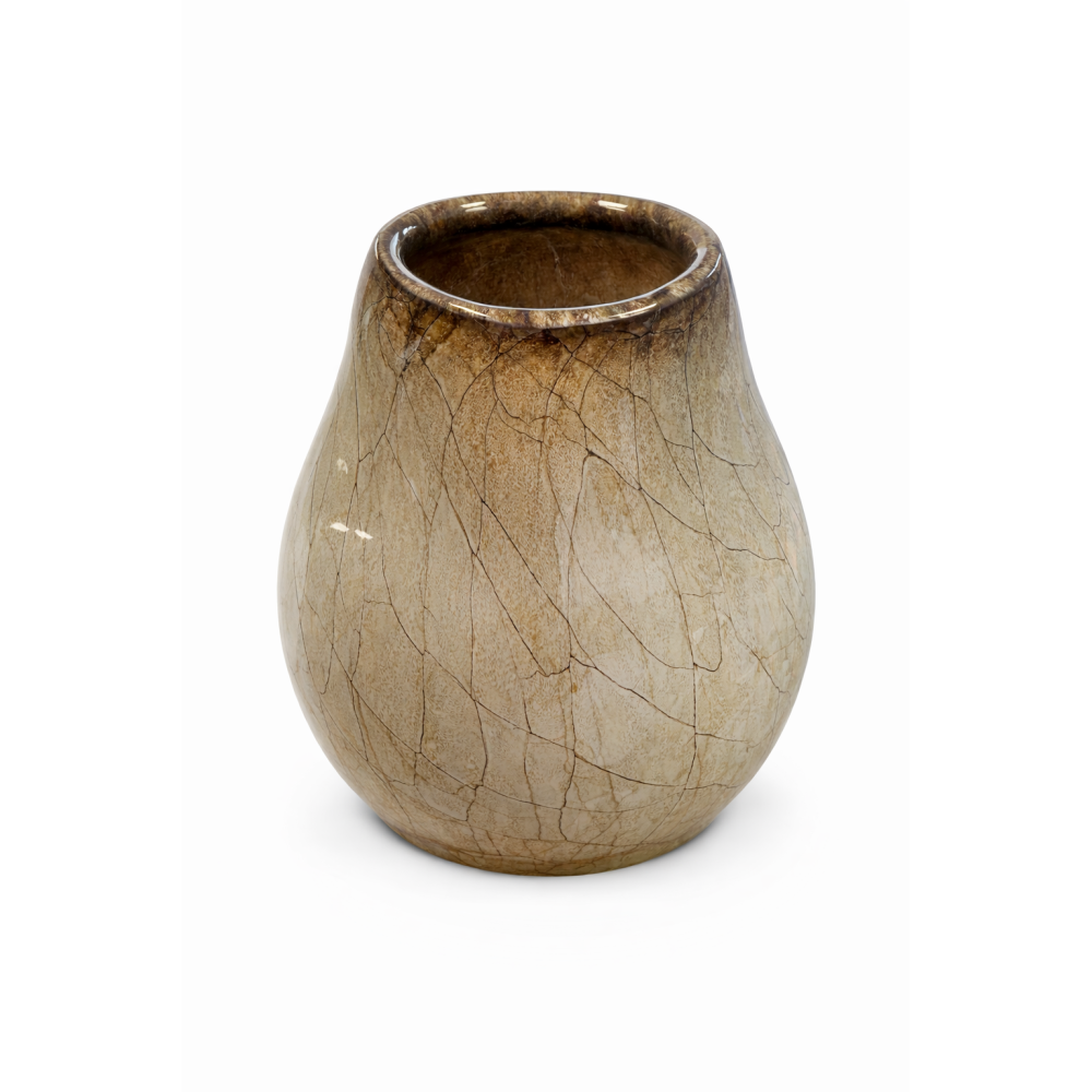 Szlachetna forma, subtelna beżowo-złota kolorystyka oraz efektowna, artystyczna dekoracja tworzą razem kompozycję, która przyciąga wzrok i nadaje wnętrzu luksusowego charakteru.