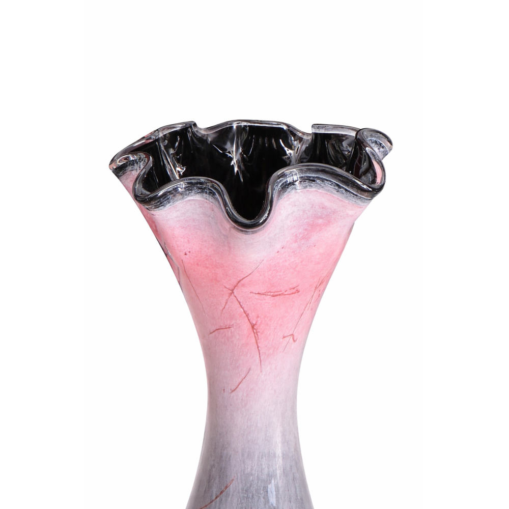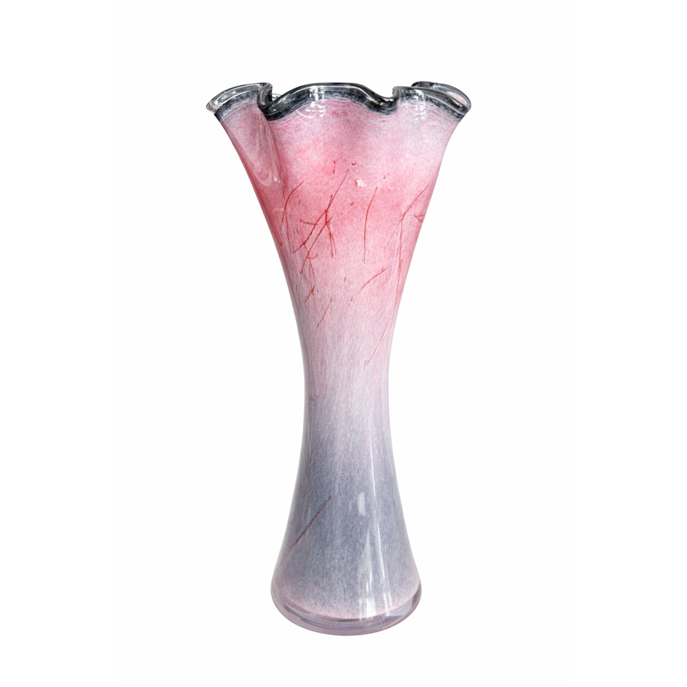 Każdy wazon wykonywany jest ręcznie, dlatego poszczególne egzemplarze mogą się delikatnie różnić od przedstawionego na zdjęciu. Różnice mogą dotyczyć układu wzoru lub intensywności kolorów. Jest to naturalna cecha szkła artystycznego i gwarancja niepowtarzalności każdego egzemplarza.