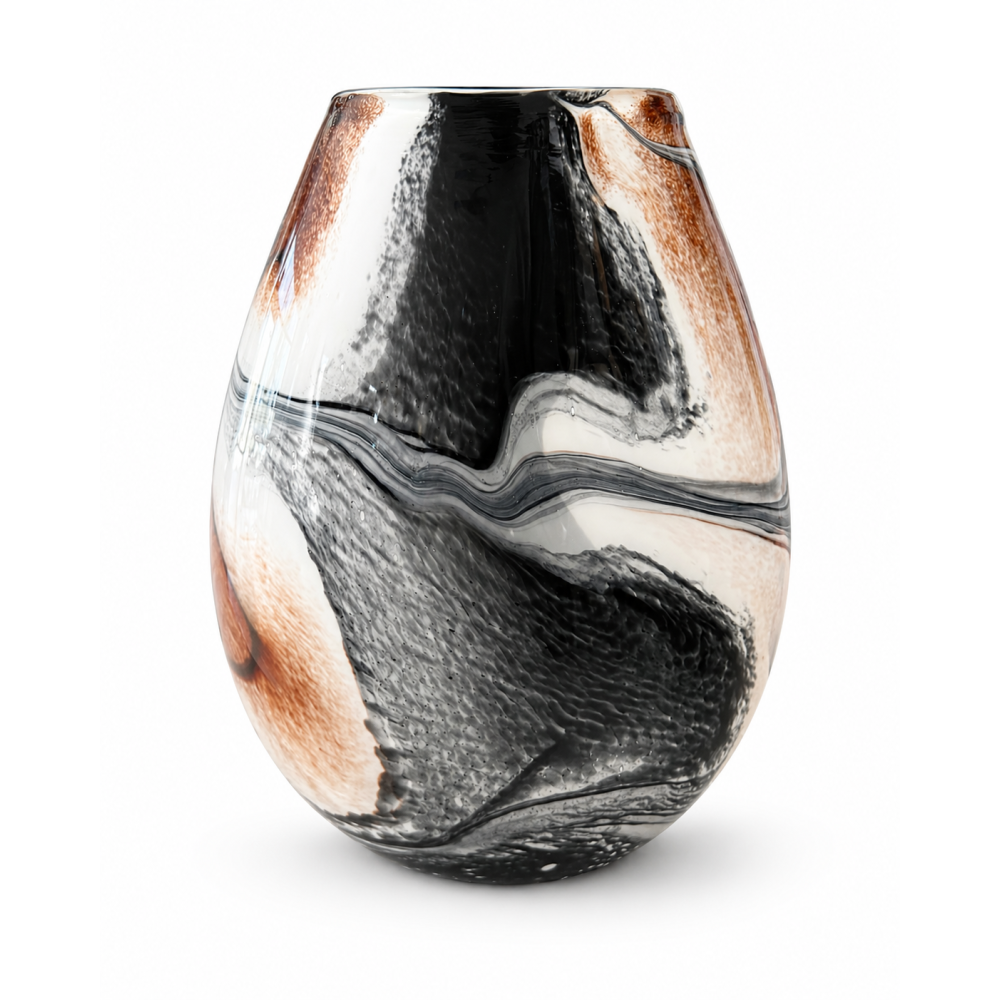 Każdy wazon wykonywany jest ręcznie, dlatego poszczególne egzemplarze mogą się delikatnie różnić układem wzoru lub intensywnością kolorów. Jest to naturalna cecha szkła artystycznego i gwarancja niepowtarzalności każdego egzemplarza.