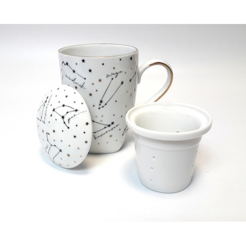 Porcelanowy kubek z zaparzaczem 300 ml Zodiak White Porcelana Bogucice w opakowaniu prezentowym
