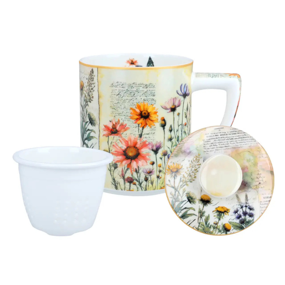Wbudowany porcelanowy zaparzacz umożliwia wygodne parzenie herbat liściastych i ziół bez potrzeby używania dodatkowych akcesoriów, a praktyczna przykrywka pomaga utrzymać temperaturę napoju oraz może służyć jako podstawka pod zaparzacz. Wysokiej jakości porcelana zapewnia trwałość, estetykę i komfort użytkowania. To także znakomity pomysł na prezent – praktyczny, elegancki i pełen naturalnego uroku.