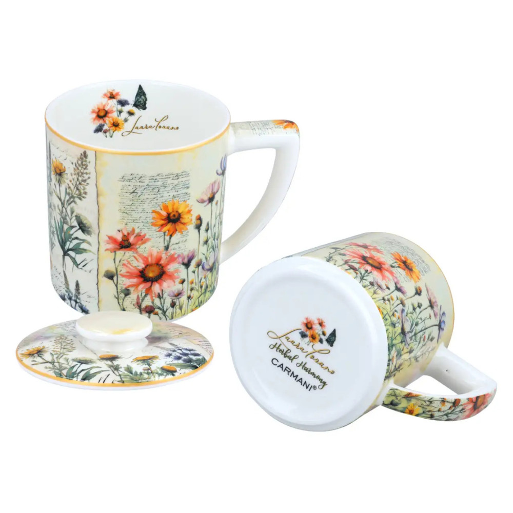 Kubek Herbal Harmony marki Carmani to doskonała propozycja dla miłośników herbaty i ziołowych naparów. Delikatne, roślinne wzornictwo autorstwa L. Lozano wprowadza harmonię i spokój do codziennych rytuałów, czyniąc każdą chwilę relaksu jeszcze przyjemniejszą.