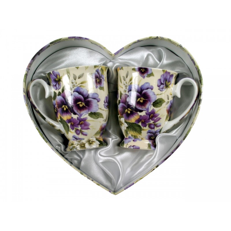 Komplet 2 kubków w sercu 350 ml - Bratki