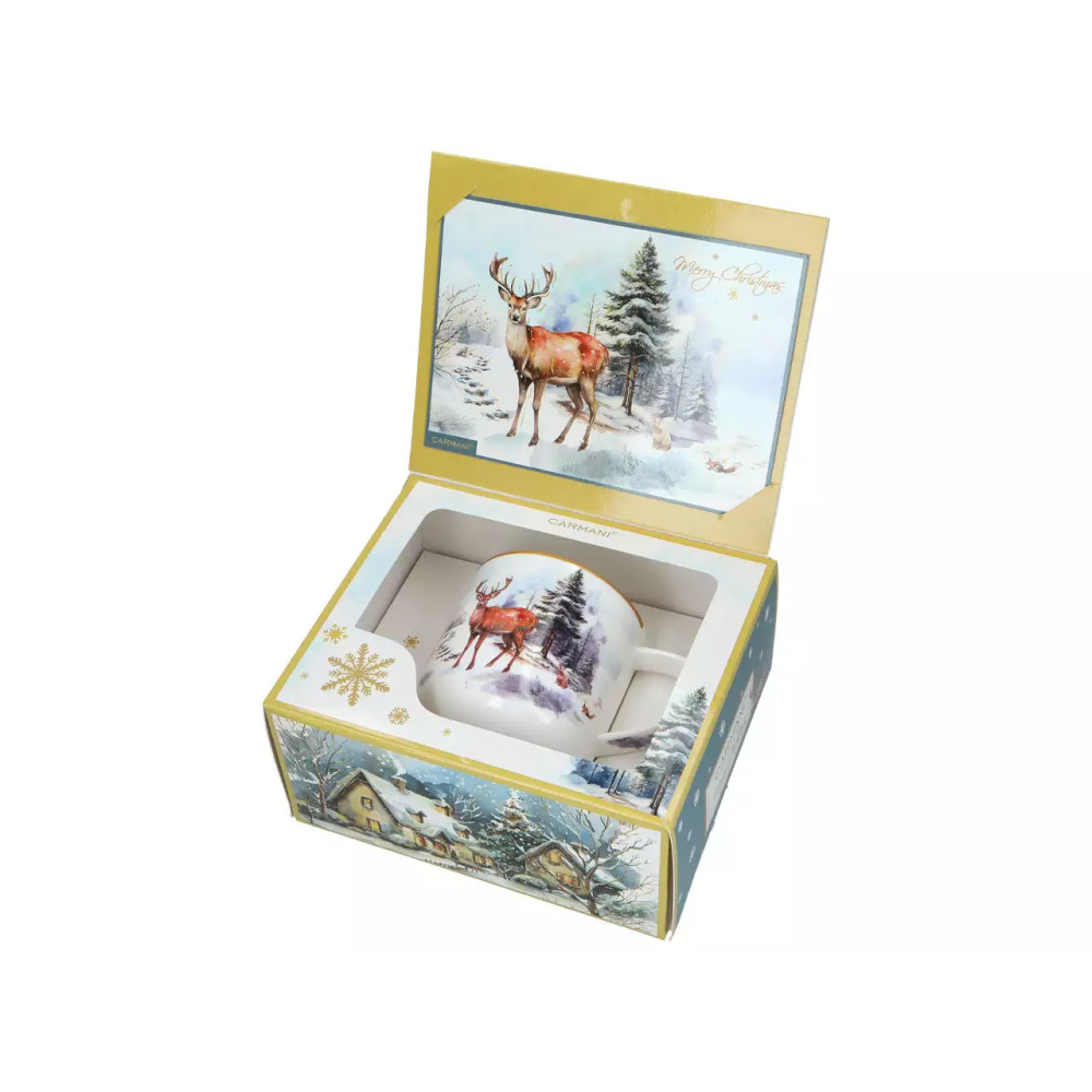 Wprowadź do swojego domu wyjątkowy, zimowy nastrój z eleganckim kubkiem CARMANI z kolekcji „Jelenie”. Wykonany z wysokiej jakości porcelany, ozdobiony motywem jeleni w ośnieżonym krajobrazie, zachwyca detalem i precyzją wykonania. To idealny kubek do aromatycznej kawy, gorącej herbaty lub czekolady podczas chłodnych, zimowych dni.