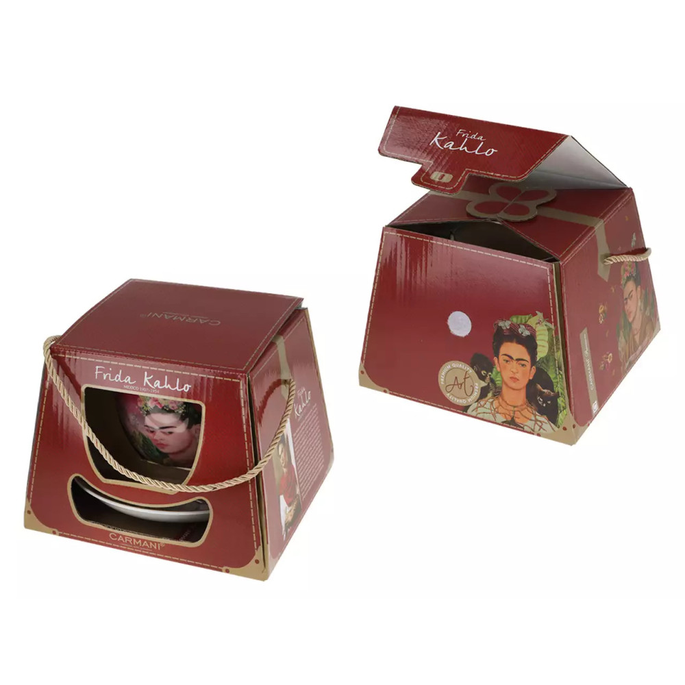 Ta filiżanka Carmani to coś więcej niż zwykłe naczynie — to hołd dla artystycznej duszy Fridy Kahlo. Każdy łyk Twojej ulubionej kawy czy herbaty stanie się chwilą refleksji i estetycznej przyjemności. Dekoracja inspirowana autoportretem artystki przyciąga wzrok i nadaje wnętrzu wyjątkowego charakteru, a porcelanowa jakość sprawia, że filiżanka jest elegancka, trwała i przyjemna w dotyku.