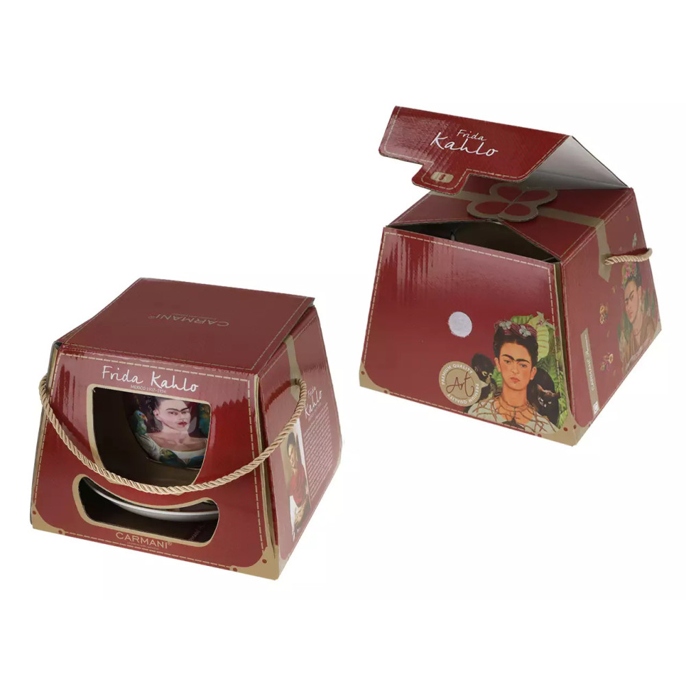 Ta filiżanka Carmani to coś więcej niż zwykłe naczynie — to hołd dla artystycznej duszy Fridy Kahlo. Każdy łyk Twojej ulubionej kawy czy herbaty stanie się chwilą refleksji i estetycznej przyjemności. Dekoracja inspirowana autoportretem artystki przyciąga wzrok i nadaje wnętrzu wyjątkowego charakteru, a porcelanowa jakość sprawia, że filiżanka jest elegancka, trwała i przyjemna w dotyku.