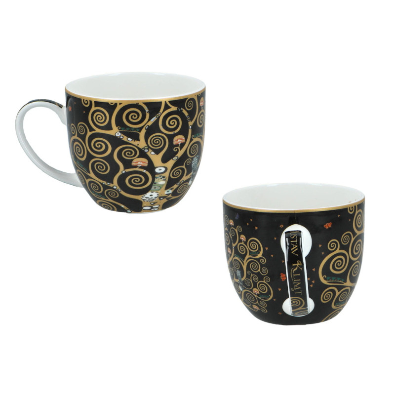 Komplet 2 filiżanek ze spodkami 250 ml - Drzewo Życia tło jasne/ciemne Gustav Klimt