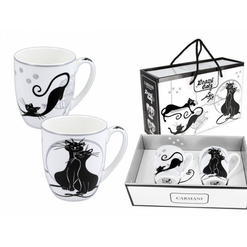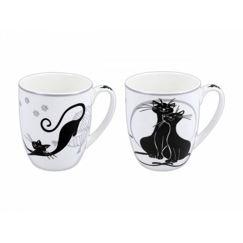 Komplet 2 kubków 400 ml - koty biało-czarne koci świat w opakowaniu prezentowym