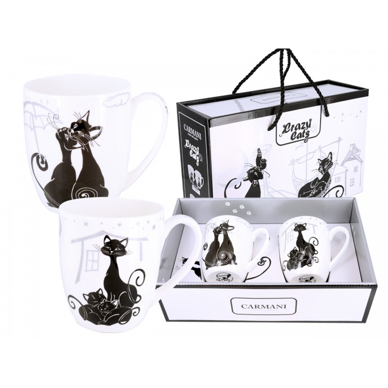 Komplet 2 kubków 400 ml - koty biało-czarne koci świat w opakowaniu prezentowym