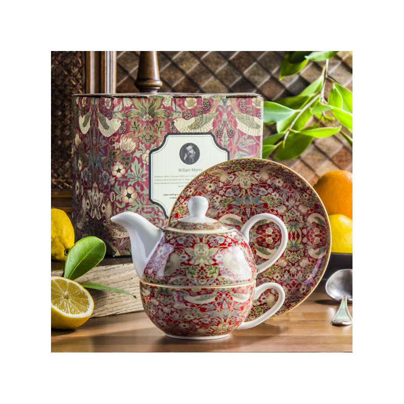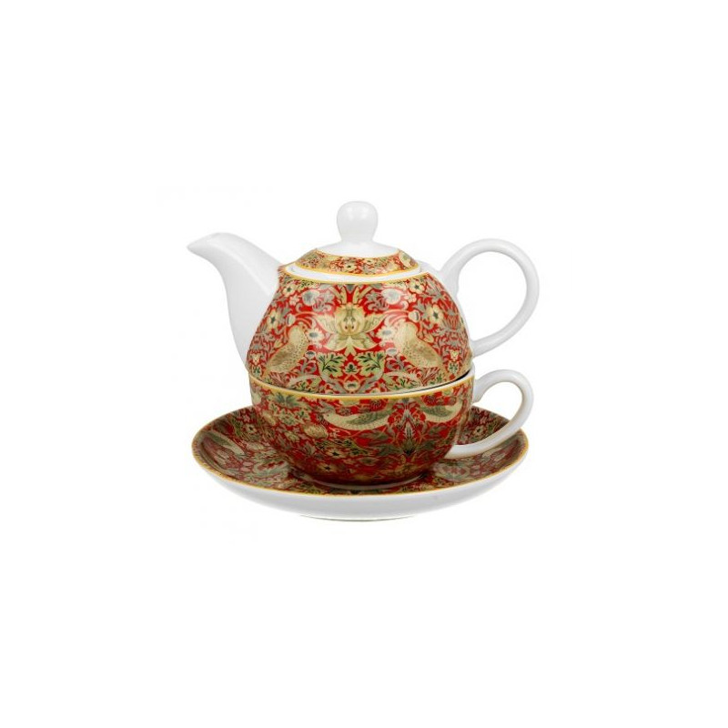 Porcelanowy Czajniczek z filiżanką i spodkiem 350 ml WILLIAM MORRIS STRAWBERY THIEF RED