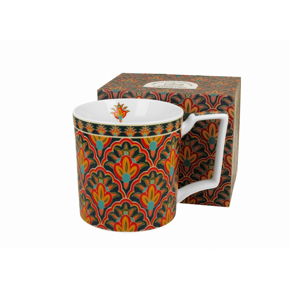 Stylowy kubek DUO „Geometric Festum” to połączenie elegancji i funkcjonalności. Wykonany z wysokiej jakości porcelany New Bone China, zachwyca pięknym geometrycznym wzorem w intensywnych barwach – granatu, różu i złota. Duża pojemność 750 ml sprawia, że idealnie nadaje się do kawy, herbaty czy gorącej czekolady.
