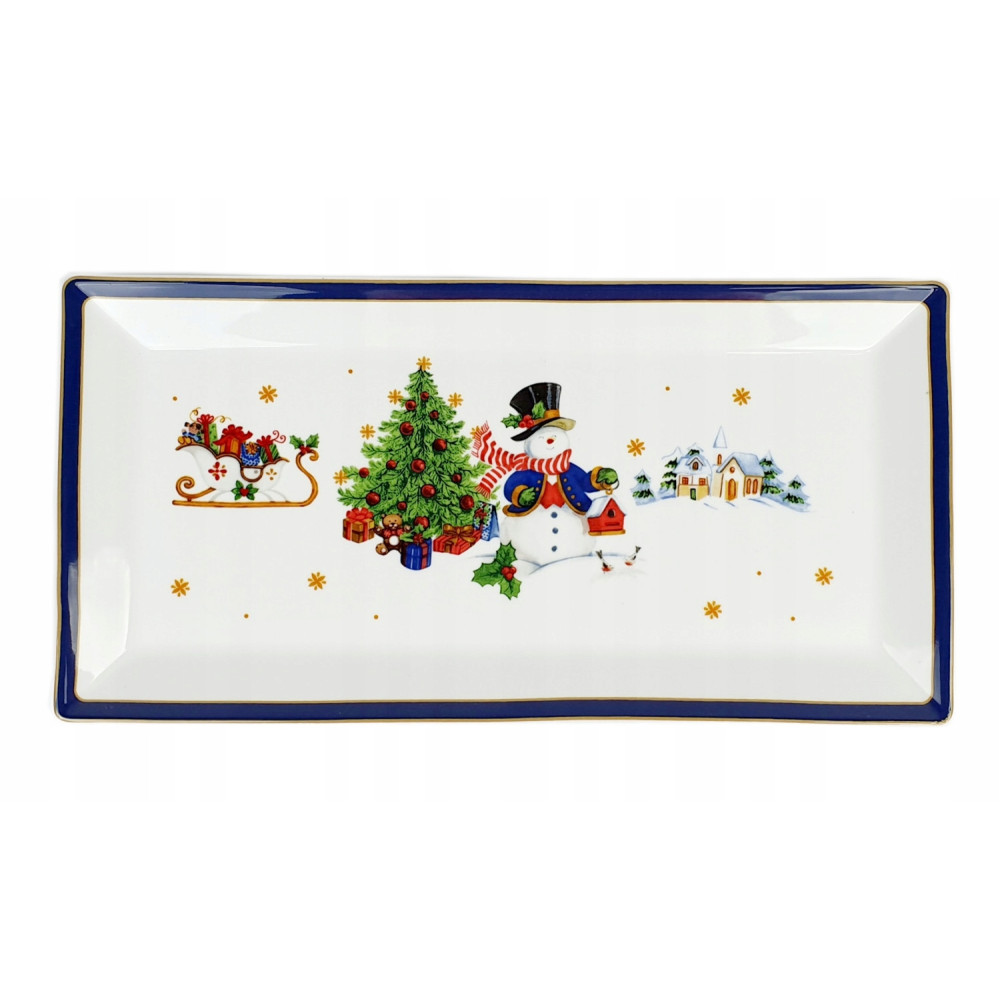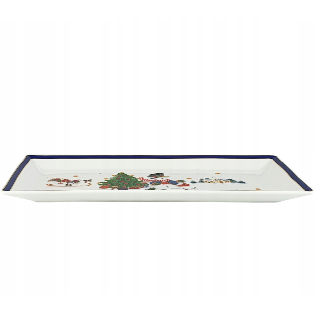 Porcelanowa tacka prostokątna Bogucice „Cicha Noc Blue” o wymiarach 36 × 18 cm to elegancki element świątecznej zastawy stołowej. Wykonana z wysokiej jakości porcelany, ozdobiona subtelnym, zimowym motywem w odcieniach błękitu i srebra, idealnie wpisuje się w klimat Bożego Narodzenia.