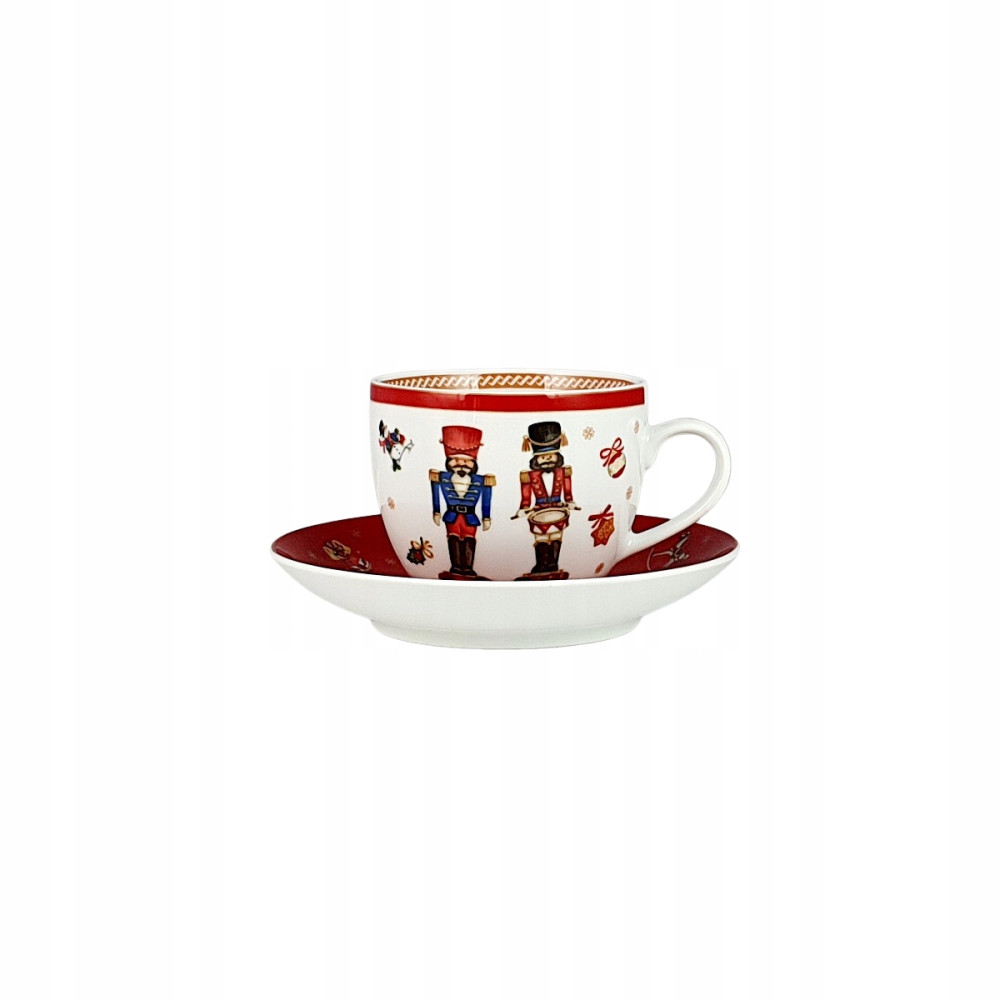 Filiżanka ze spodkiem z kolekcji „Cicha Noc” to wyjątkowy sposób na wprowadzenie świątecznej atmosfery do codziennych chwil. Wykonana z wysokiej jakości porcelany, zachwyca starannym wykończeniem i niezwykle efektowną dekoracją. Motyw przewodni kolekcji – klasyczny dziadek do orzechów otoczony zimowo-świąteczną stylistyką – tworzy ciepły, przyjemny klimat, który idealnie wpisuje się w grudniowe poranki, długie wieczory i rodzinne spotkania przy stole.