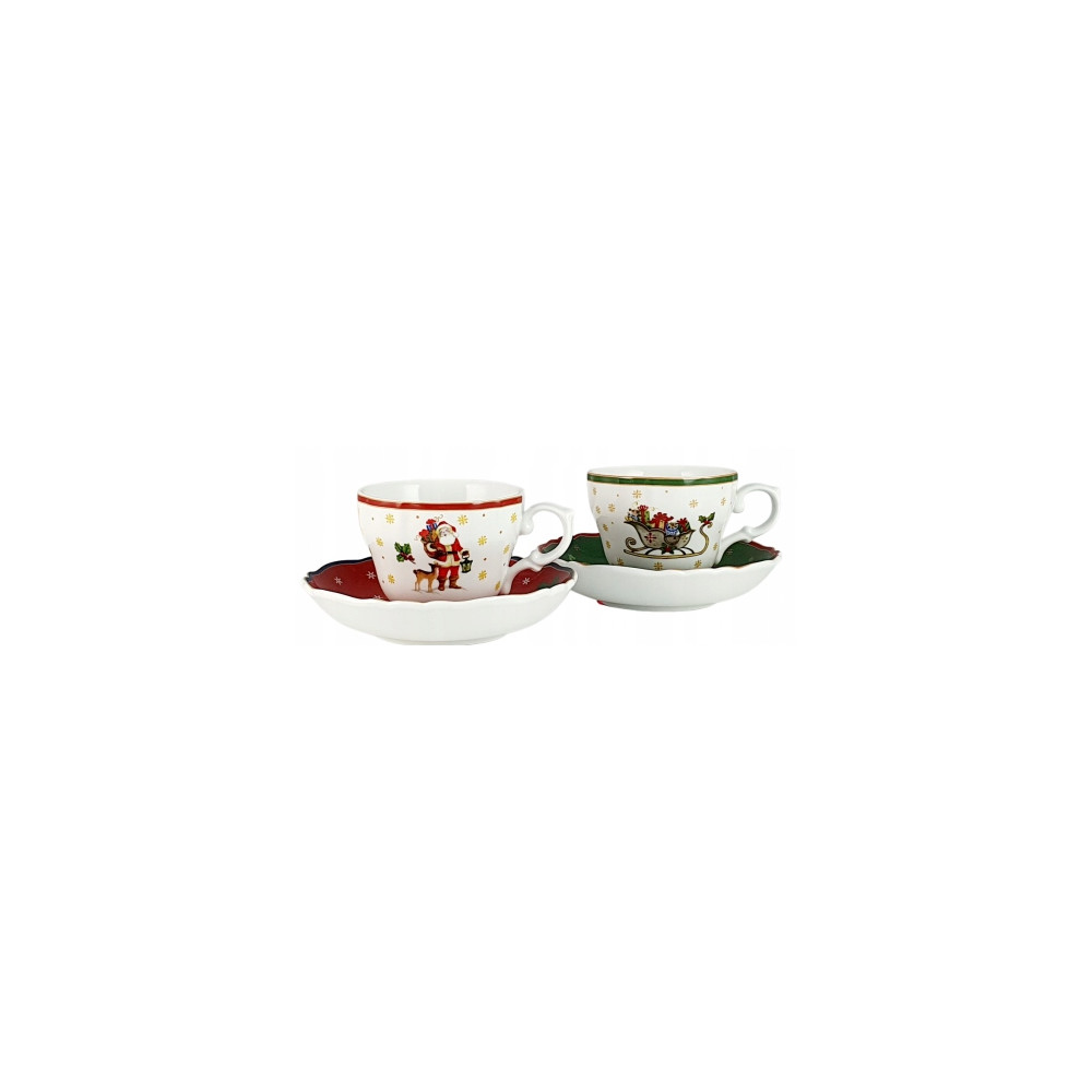 Zestaw 2 filiżanek ze spodkiem 180 ml | Bogucice "Cicha noc" red/green