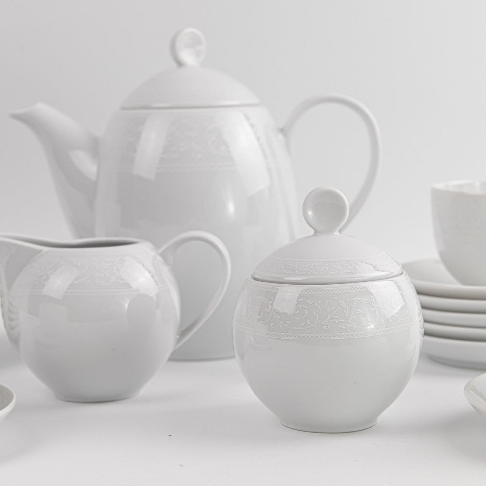 Elegancki serwis kawowy WAZA „Biała Koronka” to propozycja dla miłośników klasyki i delikatnego stylu. Wykonany z wysokiej jakości porcelany, zdobionej subtelnym koronkowym reliefem, zachwyca lekkością, połyskiem i doskonałym wykonaniem. To zestaw, który doda klasy każdemu spotkaniu przy kawie czy herbacie.