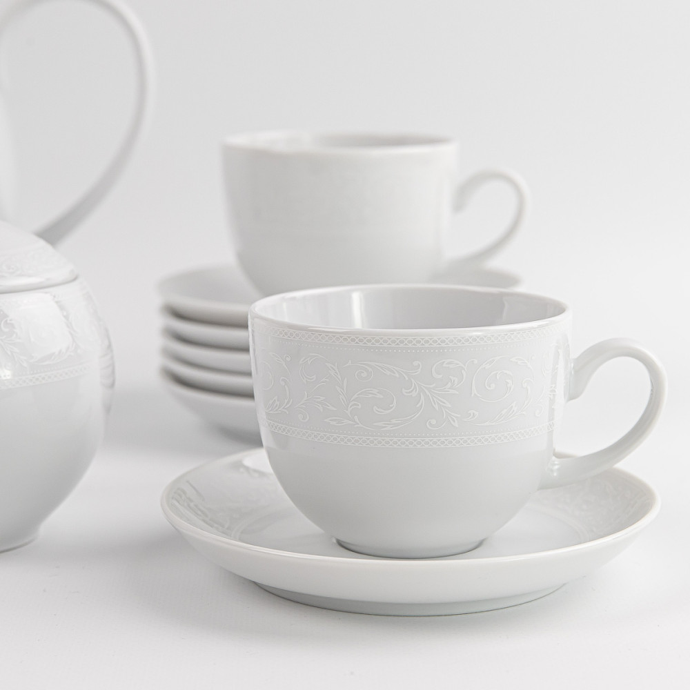 Serwis kawowy dla 12 osób/15 elementów | WAZA Biała Koronka