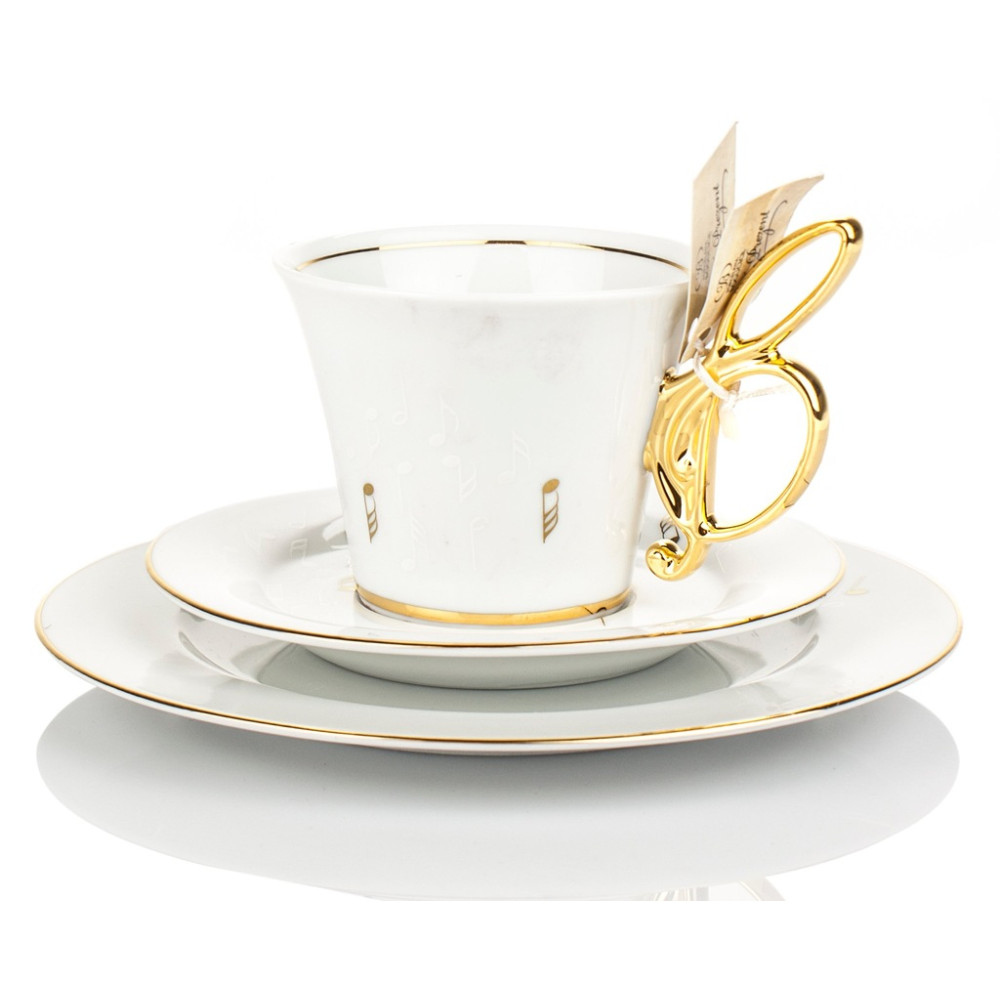 Elegancki, porcelanowy zestaw śniadaniowy z motywem inspirowanym życiem i twórczością Stanisława Moniuszki — idealny prezent dla melomanów, miłośników kultury i estetycznych naczyń do codziennego użytku.